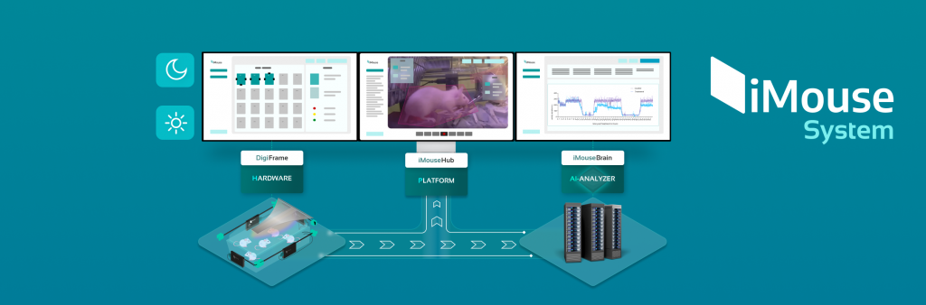 Sistemul digital de monitorizare a cuștilor iMouse permite observarea automată și continuă a comportamentului animalelor de laborator în cuștile lor, fără a le deranja. Acesta ajută îngrijitorii animalelor să observe fără probleme anomaliile și oferă cercetătorilor date obiective și continue pentru analize precise și o reproductibilitate îmbunătățită. Eficient. Prietenos cu animalele. Sigur.